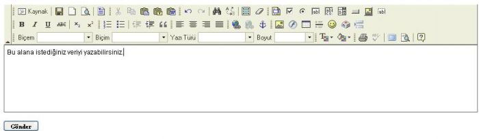 Şu kodu sayfamızda bir yerde yazdığımız zaman Fck Editörden gönderilen veri ‘bilgigonder.asp’ sayfasında gösterilir.