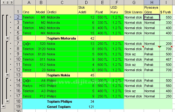 Tablo işlemlerinde kullanılan filitreleme örnekleri